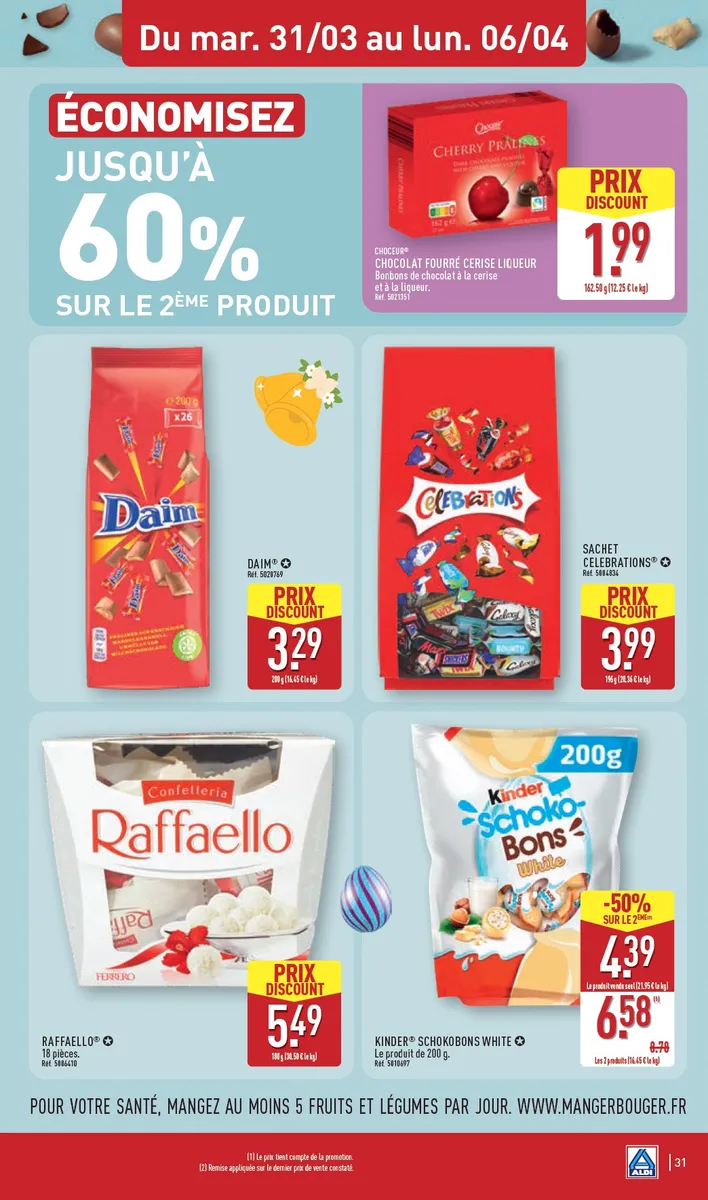 Au-delà des plaisirs de la table, Aldi propose des “pépites de la semaine” à ne pas manquer. Les beaux jours approchant, préparez votre jardin avec le bac à sable Toylino® à 59,99€, une offre en stocks limités qui promet des heures d’amusement pour les enfants. Pour une pause gourmande et rafraîchissante, le prospectus Aldi catalogue 31/03/2026 – 06/04/2026 promo cette semaine cette semaine vous suggère les framboises enrobées de la marque Mucci à 3,49€ les 140g, une exclusivité de la semaine. Ces offres sont idéales pour équiper votre extérieur et vous faire plaisir sans vous ruiner.