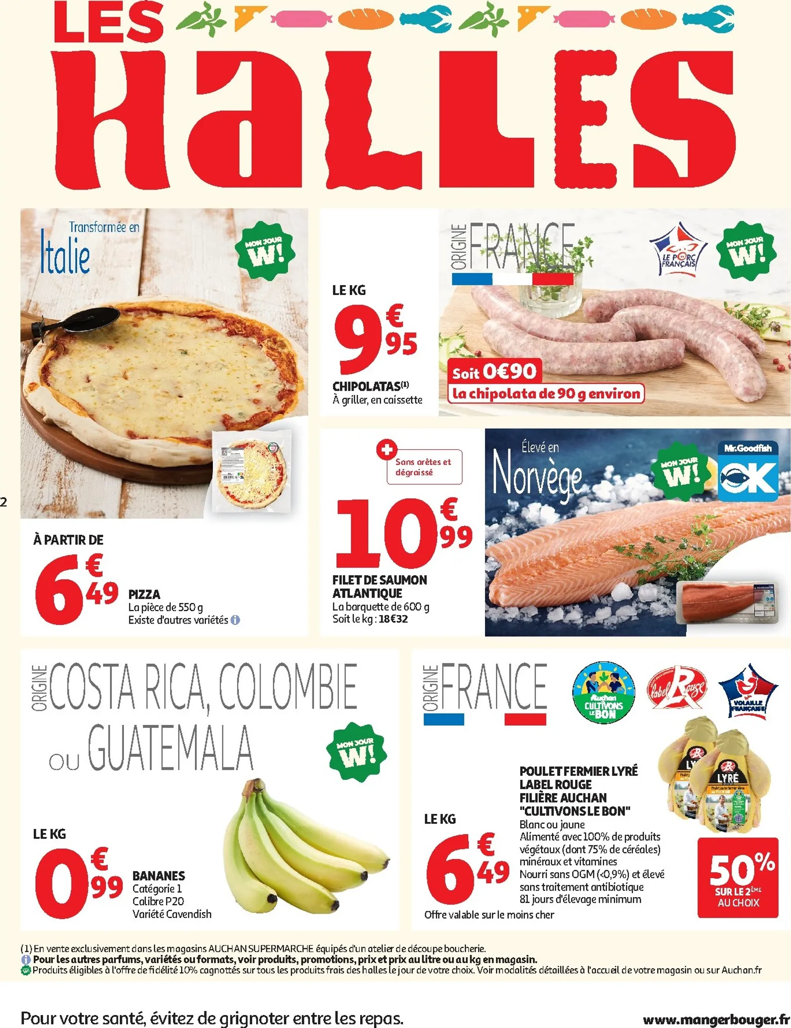 La section “Les Halles” regorge également de promotions alléchantes. Faites le plein de vitamines avec les bananes du Costa Rica ou de Colombie à seulement 0,99€ le kilo. Pour vos repas de la semaine, pensez au poulet fermier Label Rouge dont le deuxième est à moitié prix, une économie substantielle pour les familles. Les amateurs de poisson ne sont pas en reste avec le filet de saumon atlantique à un prix attractif. Auchan vous propose aussi des pizzas transformées en Italie à partir de 6,49€, parfaites pour une soirée gourmande et rapide sans se ruiner.