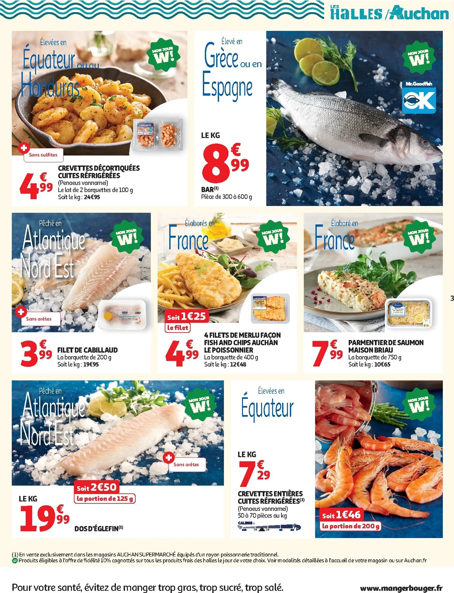 Les produits de la mer sont à l’honneur avec des offres exceptionnelles. Laissez-vous tenter par le bar frais de Grèce ou d’Espagne à 8,99€ le kilo, ou encore par les crevettes décortiquées et cuites pour seulement 4,99€ les 200g. Pour des repas simples et savoureux, optez pour les 4 filets de merlu façon fish and chips Auchan Le Poissonnier à 4,99€. Le rayon traiteur vous facilite la vie avec le parmentier de saumon et poireaux à 7,99€, une solution délicieuse pour les jours pressés. Chaque promo est pensée pour votre plaisir et votre portefeuille.