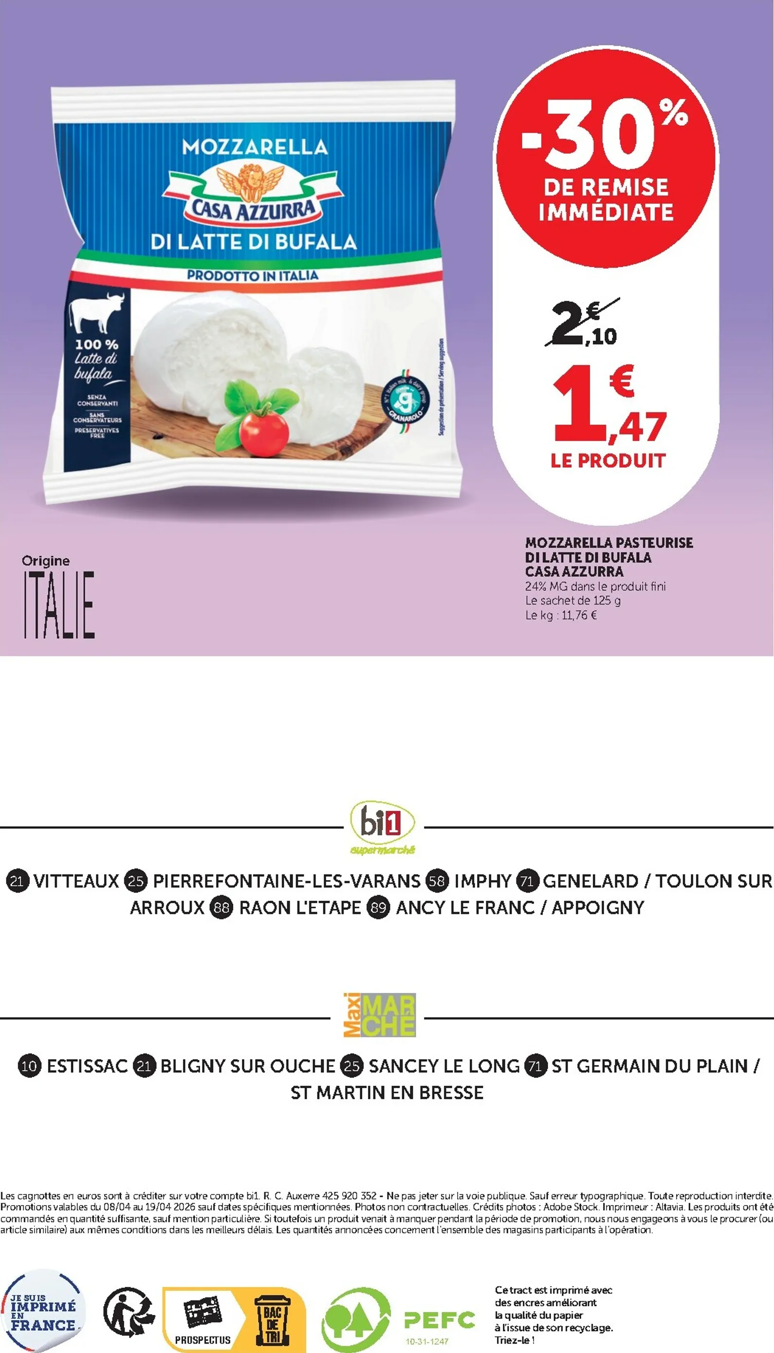 Au-delà de ces offres cosmétiques, le catalogue surprend avec des promotions alimentaires, comme la mozzarella di Bufala Casa Azzurra à -30%. Ce prospectus est une véritable mine de bons plans pour toute la famille. Pour organiser au mieux vos achats et ne rien manquer, le bi1 Catalogue du 08/04/2026 est votre meilleur allié. Retrouvez l’intégralité des offres dans le bi1 Catalogue disponible en ligne.