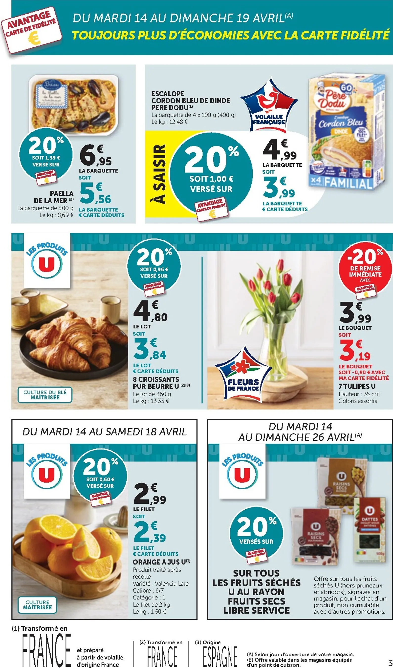 Les économies continuent au rayon traiteur et boulangerie, notamment pour les détenteurs de la carte de fidélité. Laissez-vous tenter par une paëlla de la mer savoureuse ou un cordon bleu de dinde familial Père Dodu, tous deux bénéficiant de 20% crédités sur votre carte. Pour le petit-déjeuner, le lot de 8 croissants pur beurre est également en promotion, avec 20% versés sur votre compte. Ce prospectus est une véritable mine d’or pour alléger le budget de vos courses.