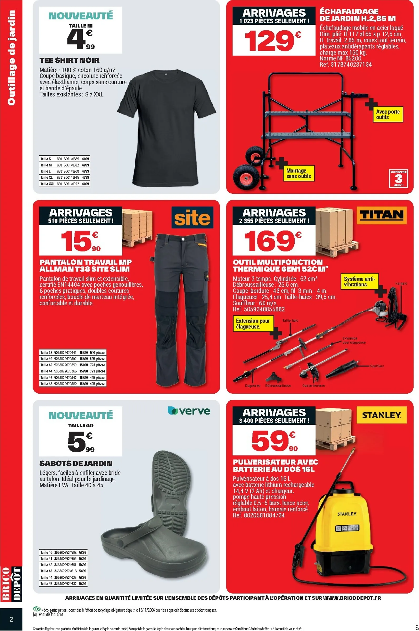 Les bricoleurs ne sont pas en reste dans ce nouveau prospectus. La mallette d’outillage Magnusson de 120 pièces est une affaire à ne pas manquer à 69,90€. Complète et robuste, elle vous accompagnera dans tous vos projets. Pour les travaux en hauteur, l’échafaudage d’une hauteur de travail de 2,85 m à 129€ assure sécurité et stabilité. Le pantalon de travail slim Allman Site à 15€ allie confort et résistance.