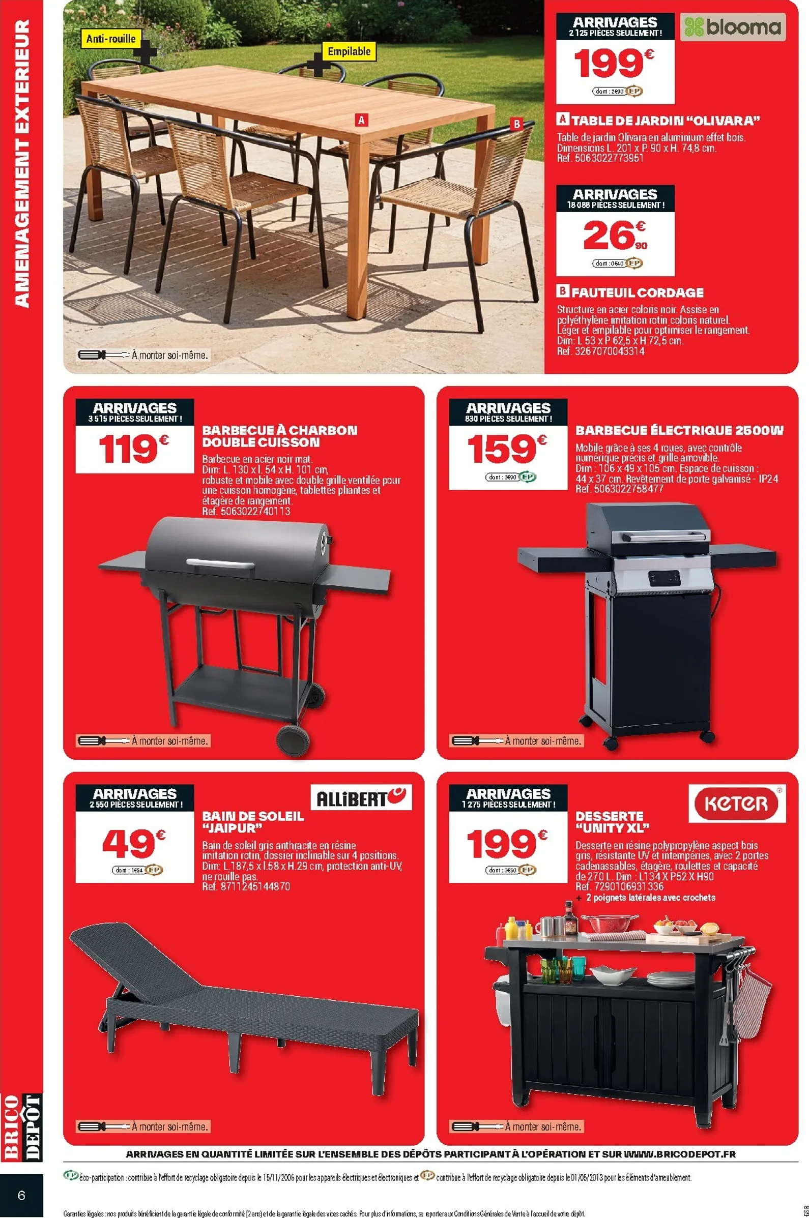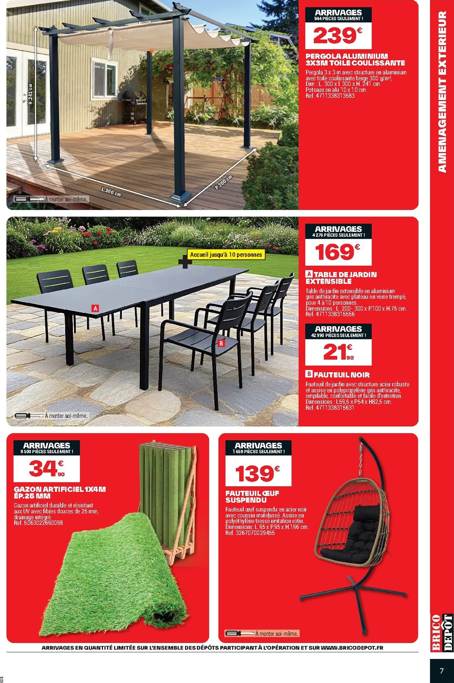 L’organisation intérieure est également à l’honneur avec le kit dressing “Charisma” en finition chêne à 115€. C’est une solution élégante et modulable pour optimiser votre espace. Ces offres sont une excellente préparation pour la saison prochaine. Pour découvrir l’intégralité des promotions, consultez le Brico Dépôt Catalogue du 03/04/2026 en ligne. Vous trouverez toutes les informations dans le Brico Dépôt Catalogue pour faire les meilleurs choix.