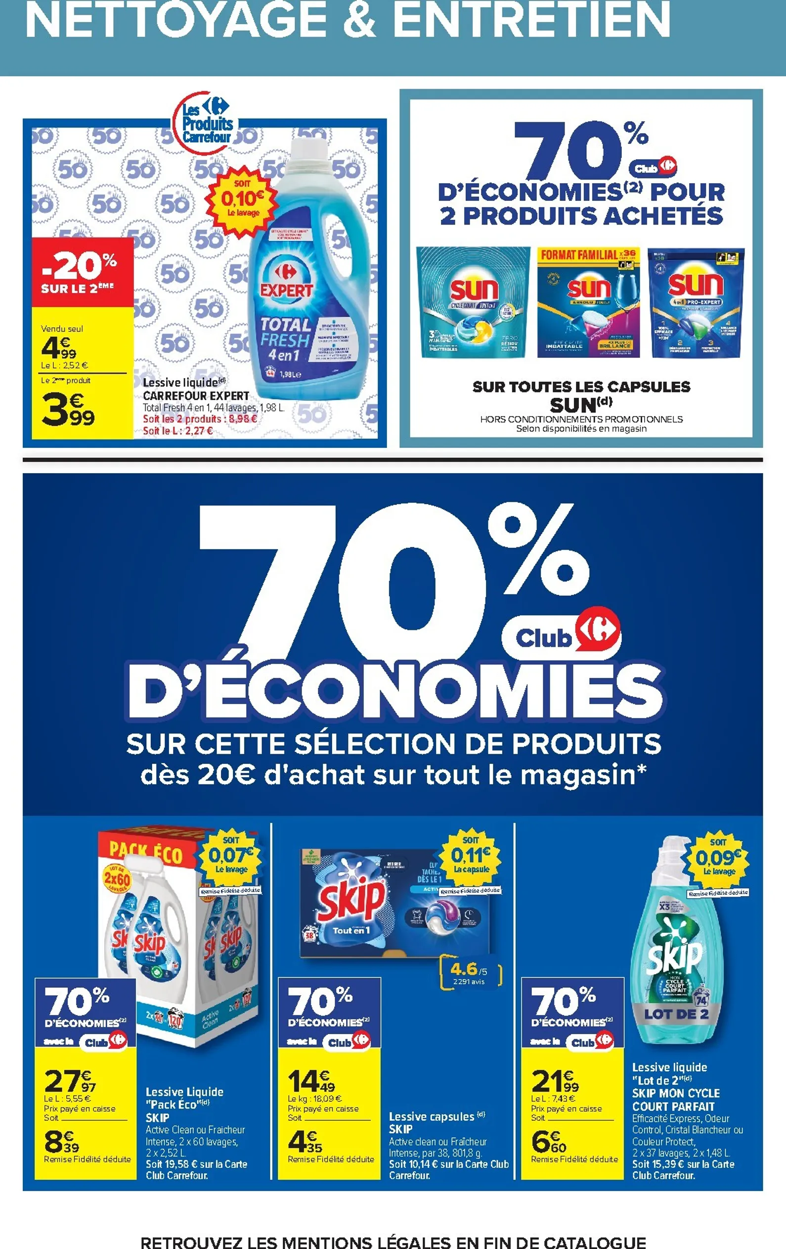 Les économies se poursuivent dans tout le magasin. Pour votre lessive, bénéficiez de 70% d’économies créditées sur votre carte Club Carrefour avec le pack éco de Skip. Au rayon frais, la gamme Bridelice est en promotion avec une offre 2+1 offert, idéale pour vos préparations culinaires. Enfin, découvrez la saveur unique des asperges violettes, proposées en botte à seulement 4,99€, une offre saisonnière à saisir.
