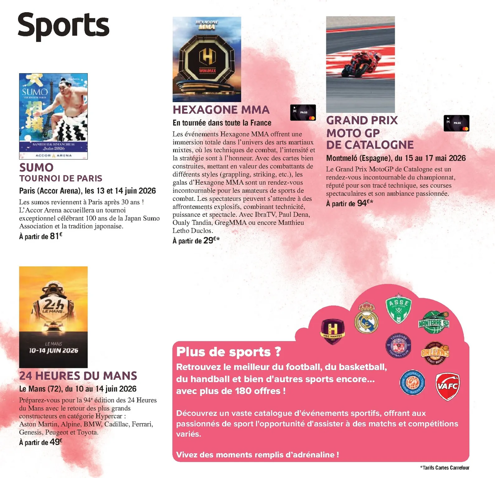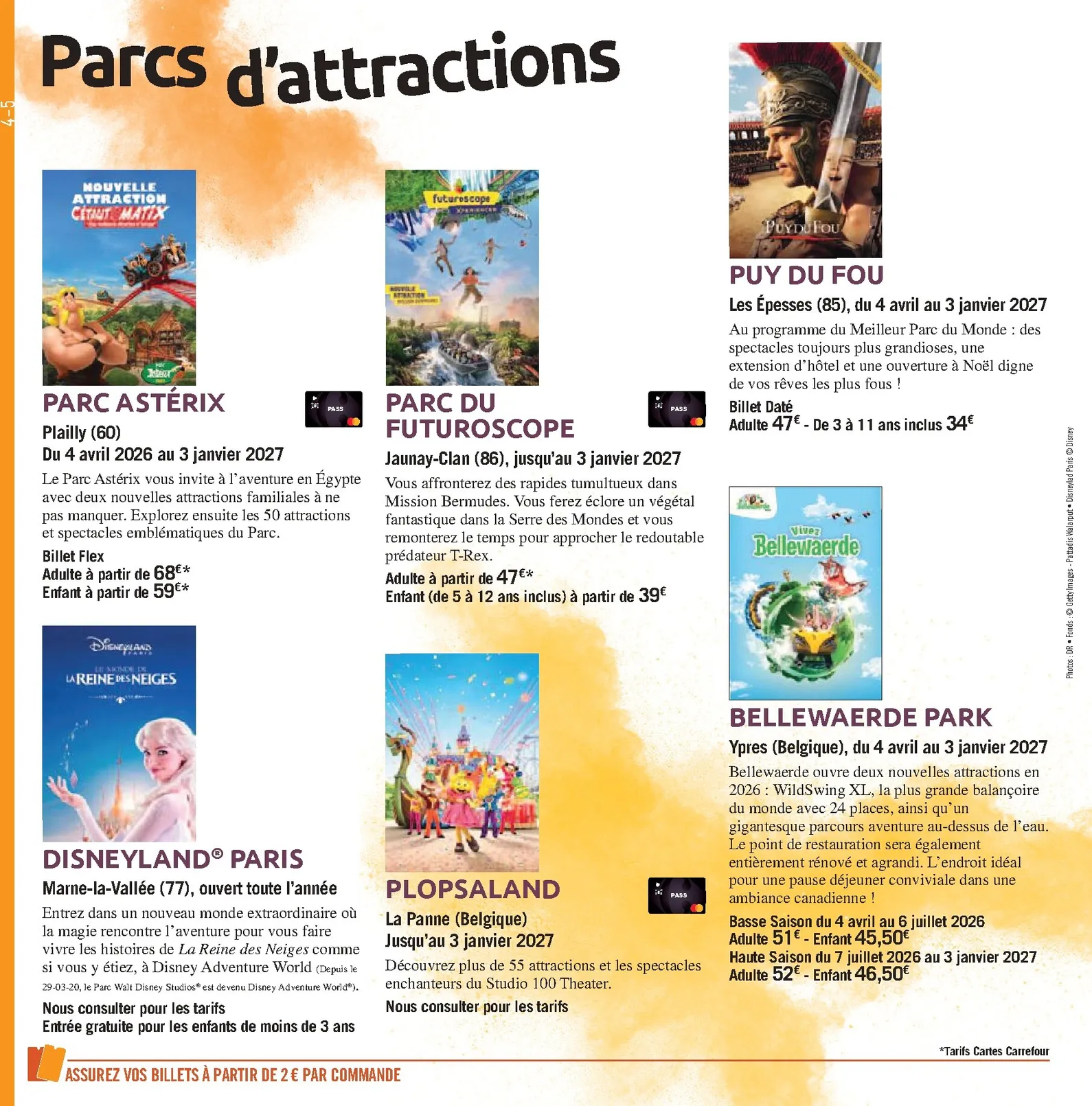Découvrez le nouveau “Book de vos Sorties” de Carrefour Spectacles, votre guide essentiel pour des expériences inoubliables d’avril à septembre 2026. Cette édition regorge de propositions pour tous les goûts. Que vous soyez amateur de parcs d’attractions, de concerts ou d’expositions, vous y trouverez des offres exceptionnelles. C’est le moment idéal pour consulter ce catalogue, car Carrefour Market Catalogue du 01/04/2026 vous attendent pour vos futures escapades.