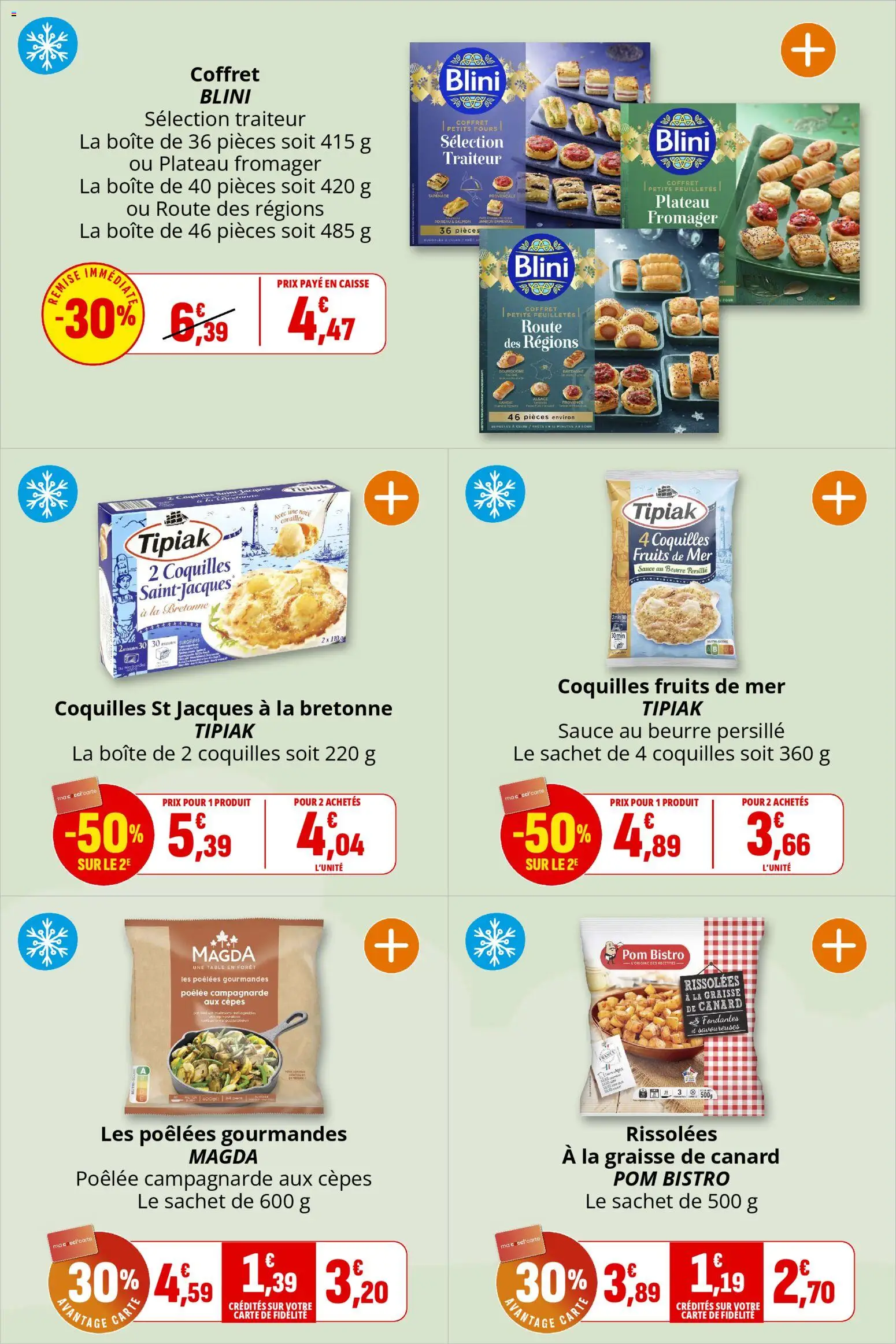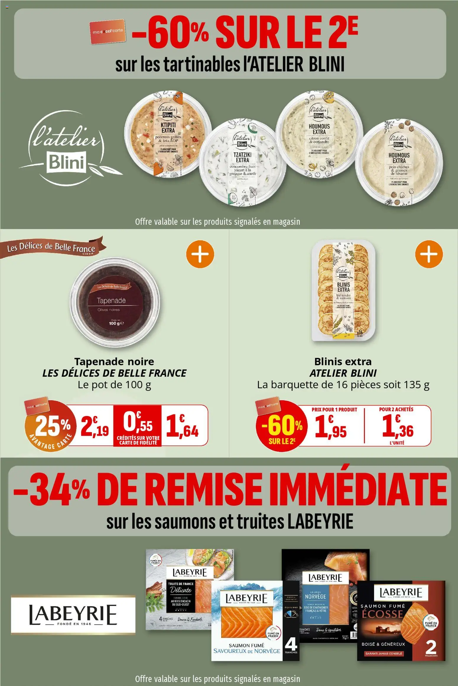 À l’intérieur du prospectus, les “Bons Plans Cocci'” se multiplient pour votre plus grand bonheur. Préparez vos apéritifs avec les saucisses cocktail Madrange ou le beurre Paysan Breton, tous deux bénéficiant d’une remise fidélité de 30%. Pour le dessert, laissez-vous tenter par une Viennetta glacée avec 25% d’avantage carte. La promotion la plus spectaculaire est sans doute sur la Gâche La Fournée Dorée, avec une réduction incroyable de 34%, faisant passer son prix à seulement 1,97€ après crédit sur votre carte. C’est le moment de remplir vos placards et votre réfrigérateur à moindre coût.
