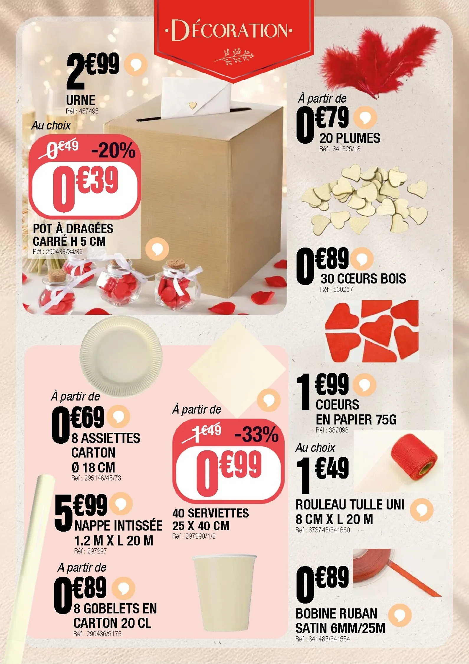 Pour une table qui impressionnera vos invités, misez sur le naturel. Le chemin de table en jute, en promotion à 2,99€, apporte une touche rustique chic. Associez-le à des sets de table ronds à 0,99€ et des guirlandes de feuillage pour une décoration harmonieuse. Cette semaine, les mini succulentes à 1,49€ ajouteront une touche de verdure à votre centre de table.
