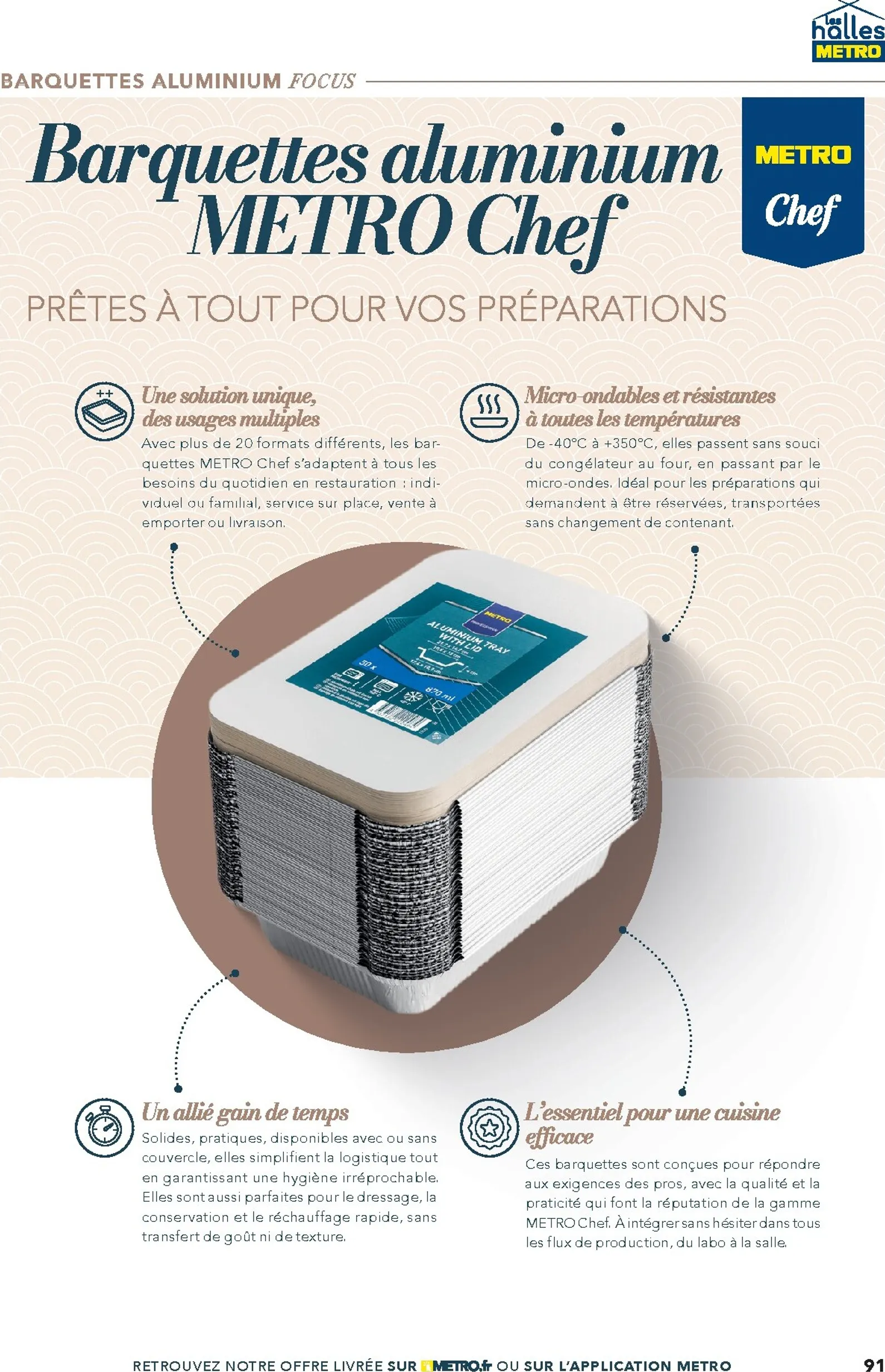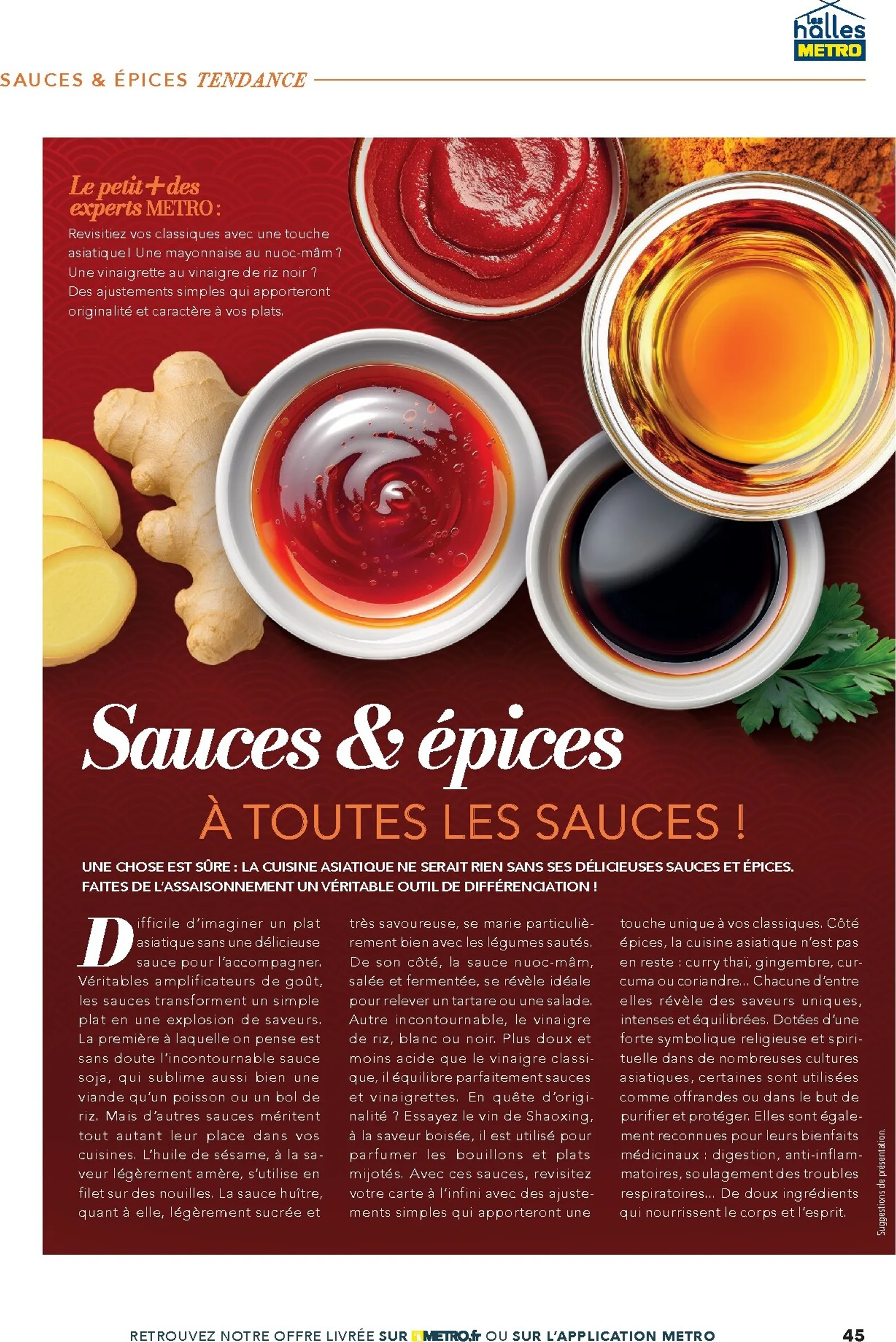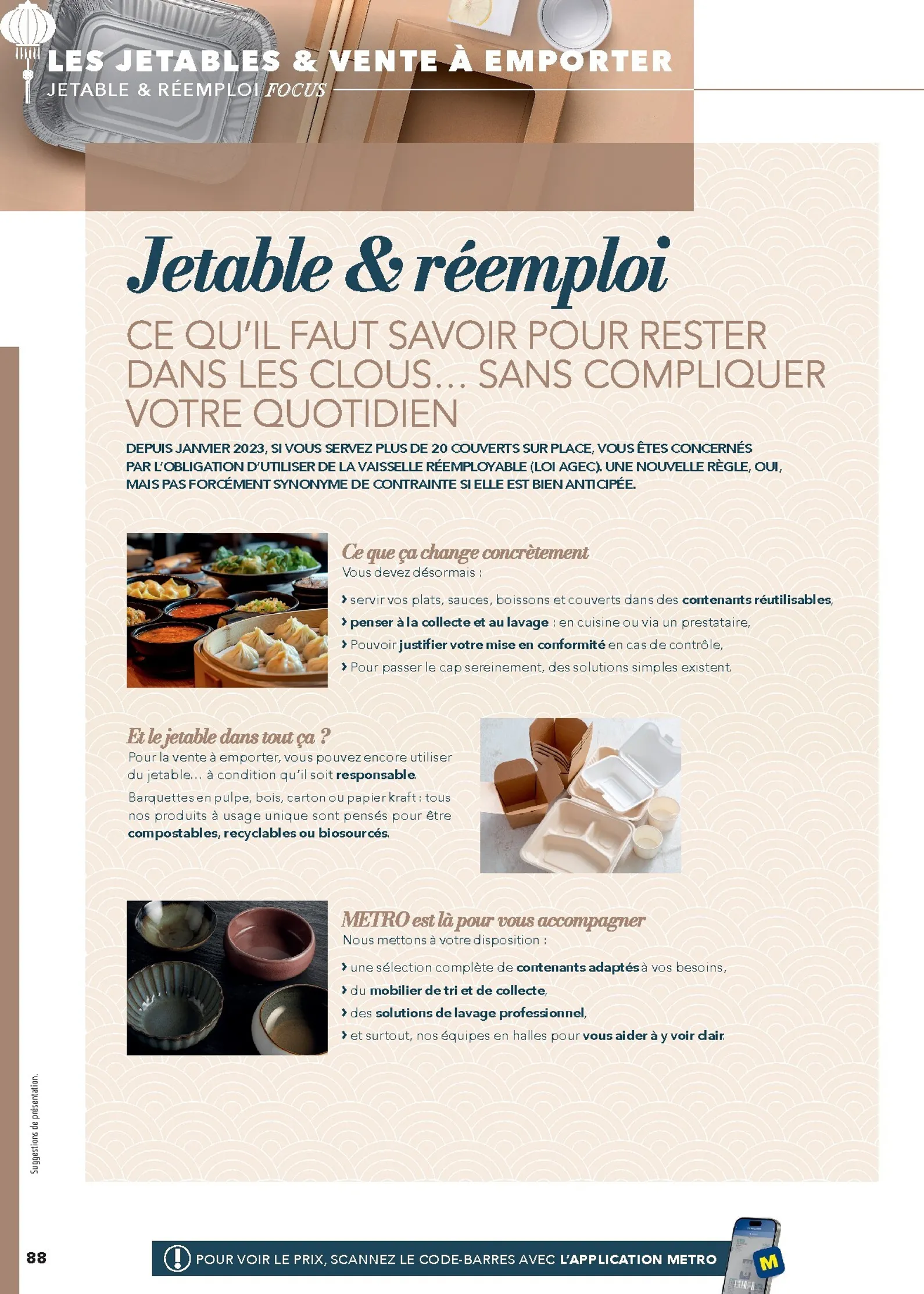 Ce prospectus va au-delà des ingrédients en proposant des idées et tendances. Le focus sur l’okonomiyaki, le bao brioché ou les recettes de phở bò sont de vraies sources d’inspiration. Metro vous accompagne aussi dans votre logistique en fournissant des solutions pour la vente à emporter, des emballages adaptés et de l’équipement de cuisine performant. Tout est pensé pour optimiser votre service et garantir la satisfaction de votre clientèle.