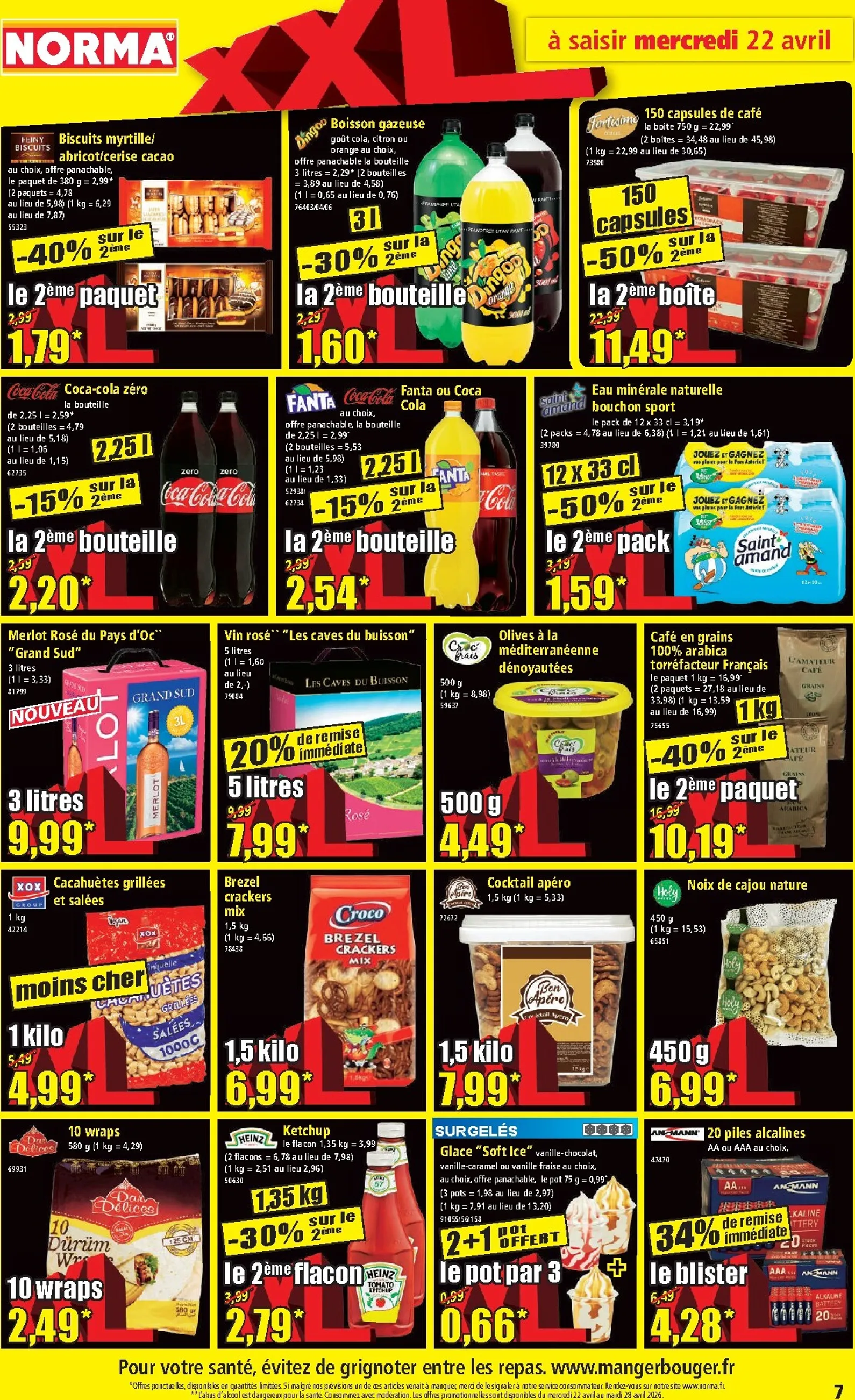 L’offre est complétée par des promotions comme le croissant fourré en formule 3+1 ou les quatre bouteilles de vin blanc Pinot Blanc pour le prix de deux. Pour voir l’intégralité des bons plans, consultez le Norma Catalogue. C’est le moment parfait pour profiter de Norma Catalogue du 22/04/2026 et faire le plein de produits pour la semaine à venir.
