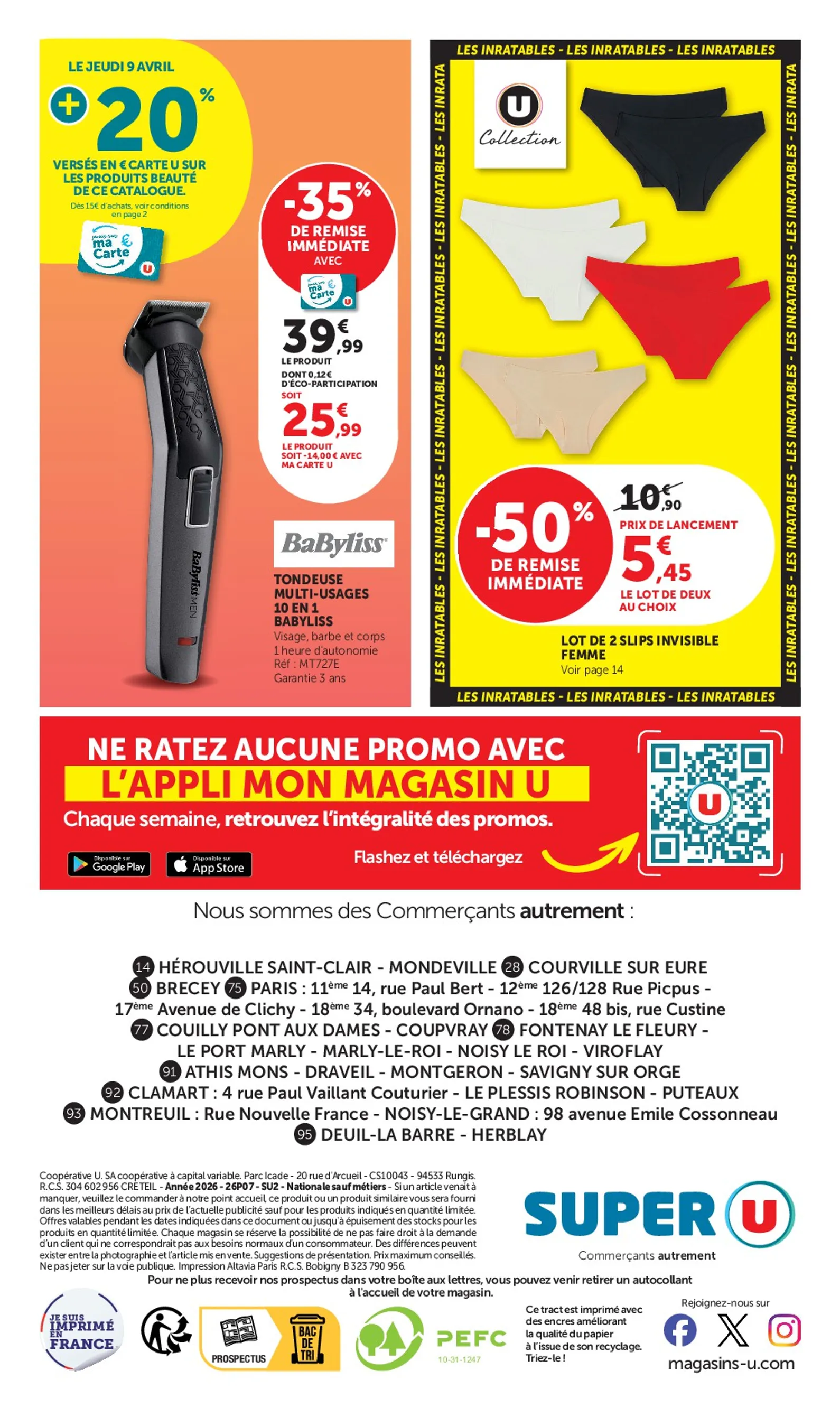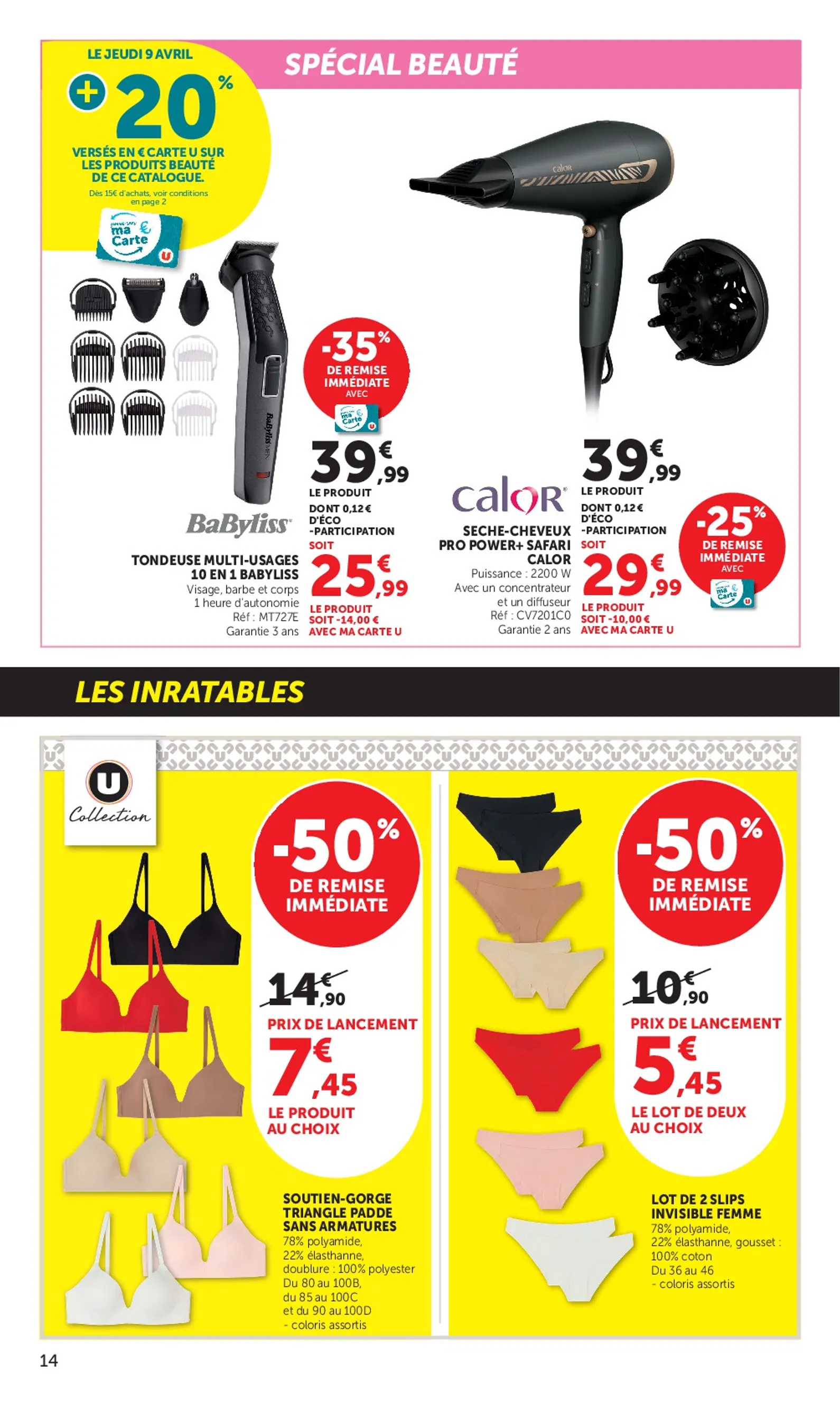 Au-delà des cosmétiques, le catalogue de la semaine prochaine inclut une tondeuse BaByliss à prix réduit et de la lingerie U Collection à moitié prix. Pour ne rater aucune promotion et préparer vos achats, consultez le Super U Catalogue du 08/04/2026 dans son intégralité. Retrouvez tous les détails dans le Super U Catalogue et planifiez votre prochaine visite.