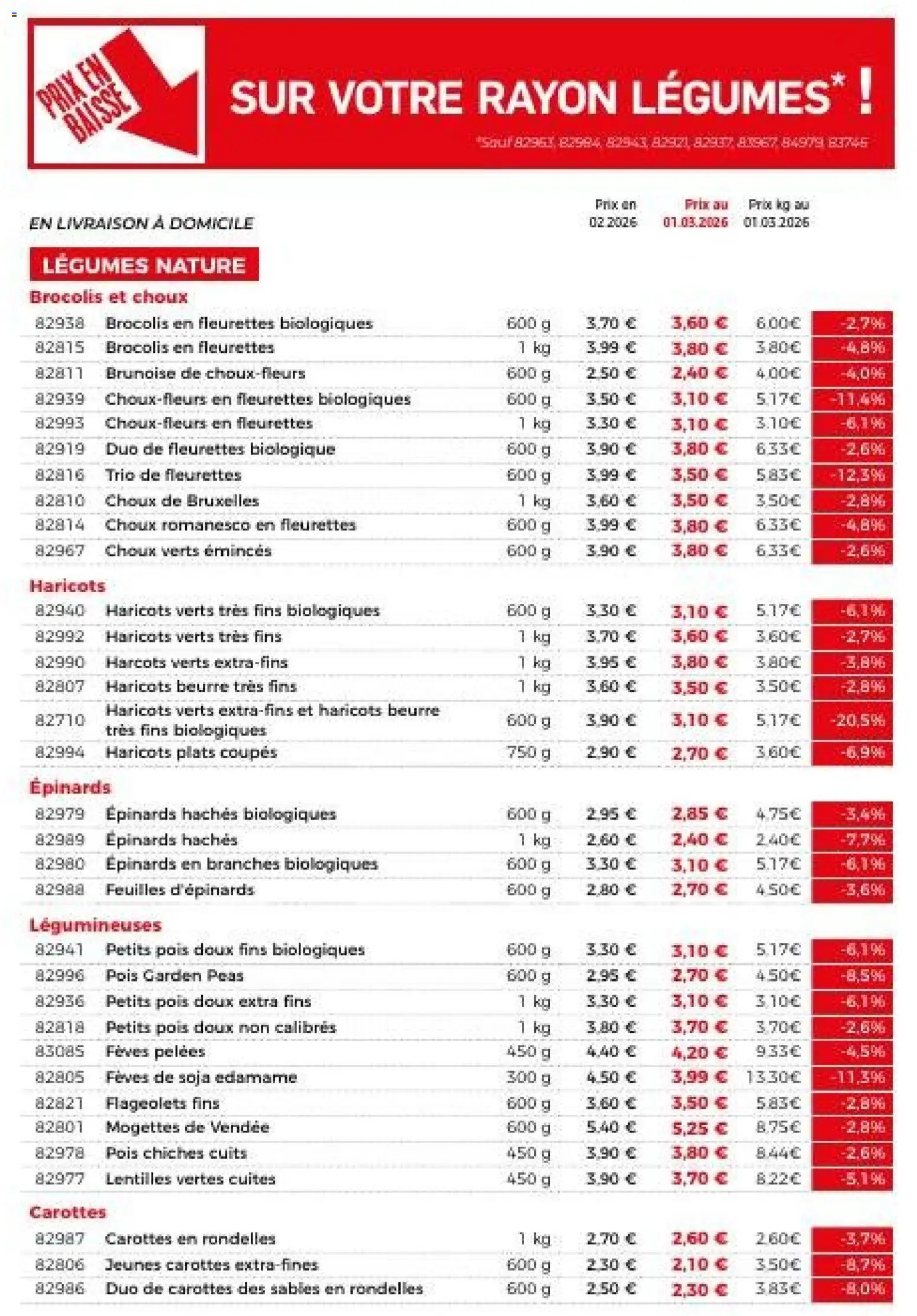 Plongeons dans le détail des offres qui vont ravir vos papilles et votre portefeuille. Les amateurs de légumes verts seront comblés avec des réductions spectaculaires. Imaginez les haricots verts extra-fins et haricots beurre très fins biologiques (600g) avec une baisse de prix de -20,5% ! Le duo de fleurettes biologique (600g) n’est pas en reste avec une remise de -12,3%, tout comme les choux-fleurs en fleurettes biologiques (1kg) à -11,4%. Même les fèves de soja edamame, très tendance, voient leur prix chuter de -11,3%.